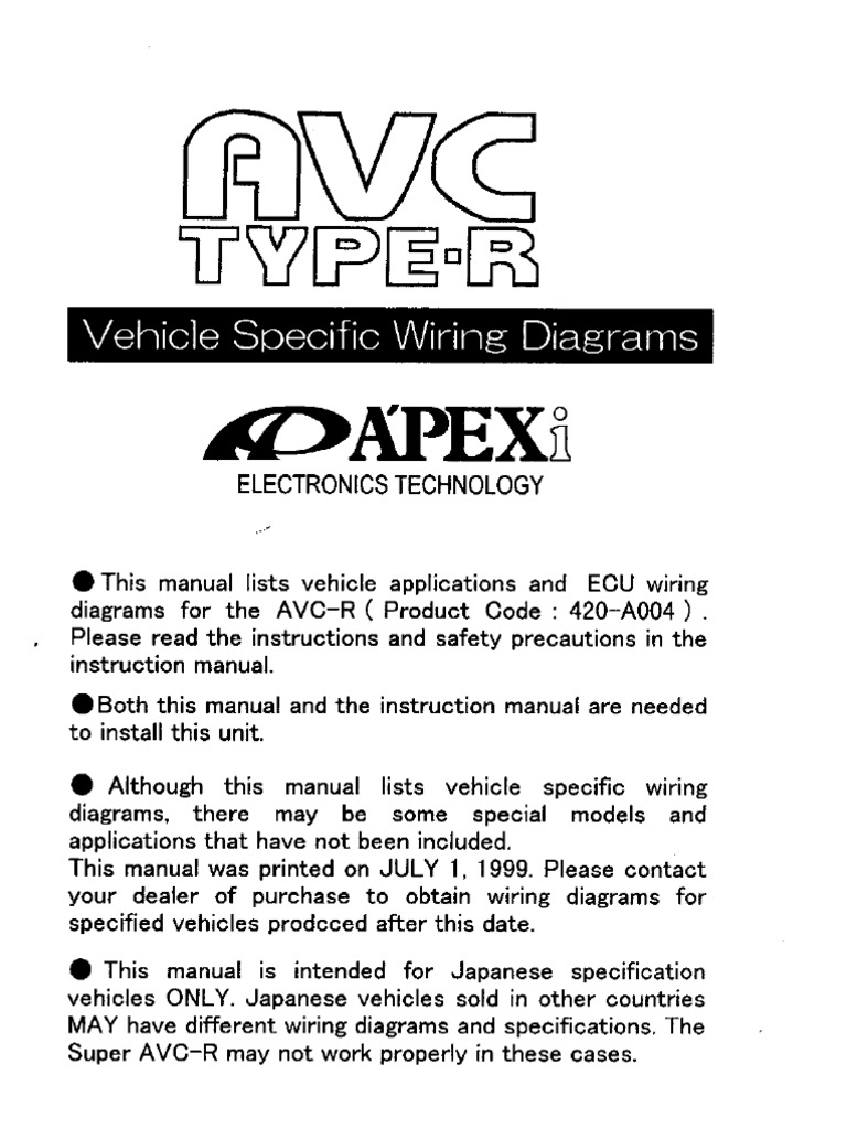 Avcr wiring diagram. The super avc r may not work properly in these cases. Apexi avcd boost controller actuator valve controller installation instruction manual. Can someone go have a quick look and tell me what colour wire goes to what on the boost control solenoid. Pinned an nice write up john. Exhaust system manuals center pipe 144 n052 downpipes 145 m005 gt spec 172 kt05 172 kh14 172 kh13. E this manual is intended for japanese specification vehicles only.