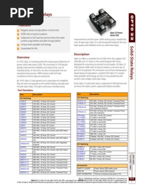 Every opto 22 solid state relay is subjected to full load test and six times the rated current surge both before and after encapsulation. This technical note lists part number matches and notes differences with other manufacturers products.